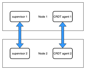 We use Horde’s distributed supervisor mechanism for distributing supervisor across nodes in the cluster. Horde uses CRDT to sync data between nodes. This means the supervisors look at different data but they achieve eventual-consistency.
